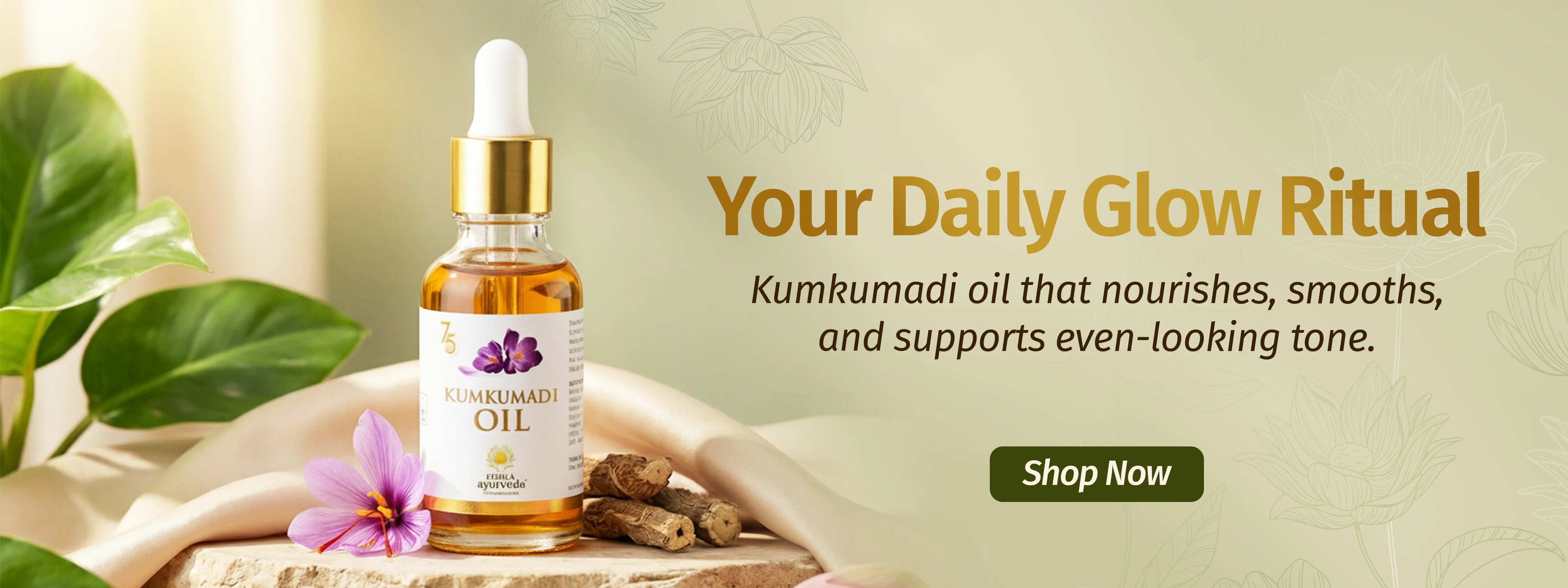 Kumkumadi ThailamKumkumadi Thailam is a classic Ayurvedic oil that helps detoxify your skin, balance your pigmentation, soothes redness and irritation to make your skin calm and healthy, so that the glow comes naturally.Most standard Kumkumadi oils give short term glow and that too at the price of your skin because they contain harsh chemicals. But our Kumkumadi Thailam is made with 26 ingredients that are nature derived, so your glow from within. It is known for its therapeutic effects, making it gentle and more effective for everyday care.Red Sandalwood, Beauty Berry, Lotus and Saffron and many more that work together to rejuvenate your skin and support your natural skin repair process.