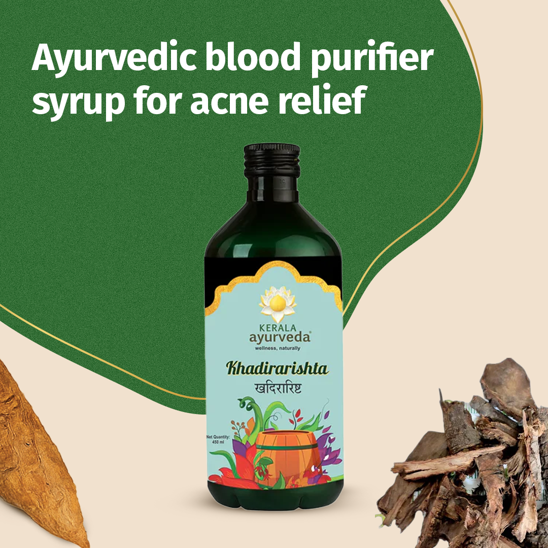 Are acne breakouts and sensitive skin troubling you? Hiding these under concealers is only going to exacerbate the skin’s vulnerability. If you have sensitive skin, using your favorite cosmetics could cause skin redness, burning sensation, irritation, or dryness and even worsen acne outbreaks. Having acne is distressing, but having it with sensitive skin is even more challenging. Have you considered what could be the root cause of all this? The real culprit could be the accumulated blood toxins. Vitiated blood increases the likelihood of skin inflammation and dysfunctional your skin’s protective barrier. Using topical skin products alone may not achieve the desired result when toxins thrive in your blood. Kerala Ayurveda Khadirarishta is a one-stop solution for acne and sensitive skin issues. This herbal tonic is a powerful combination of blood-purifying and skin-rejuvenating herbs like Cutch tree or Khadira, Himalayan cedar or Devadaru, Purple Fleabane or Bakuchi, Three dried fruits or Triphala, Fire flame bush or Dhataki, Honey, and Rock Sugar. It helps to detoxify your blood and gives acne-free, plump skin.
